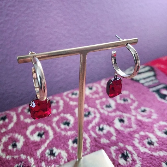 チェコスロバキアの1970年のヴィンテージガラス使用したハンドメイドよるピアスです。サイアムルビーレッドは、女性らしく落ち着いた深みのある色。ヴィンテージならではの古きよきデザインやストーリーを感じていただけたら幸いです。 【素材】 ・1970'sヴィンテージガラス ・金具:真鍮、チタンポスト 【サイズ】 ガラス 12×10mm 金具 外径20mm 幅3mm 【ATTENTION】 ・ヴィンテージガラスとは、1930年~1999年の間にヨーロッパなどで作られた、希少性の高い貴重な年代物です。 ・1点1点丁寧にお作りする事を心掛けておりますが、手作業で行っているため、多少の誤差や歪み、ヴィンテージによる微細な傷などある場合もございますが、その点もご了承いただけましたら幸いでございます。 ・掲載商品は店頭での販売も行っているため、注文が重複してお買い上げができない場合もございますので、予めご了承下さい。 ・購入後の返品交換は致しかねます。 ご質問などございましたら、 CONTACTよりお気軽にお問い合わせくださいませ。