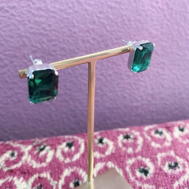 ドイツの1970年のヴィンテージガラス使用したハンドメイドよるピアスです。エメラルドグリーンは、深海の色を感じさせる緑。ヴィンテージならではの古きよきデザインやストーリーを感じていただけたら幸いです。 【素材】 ・1970'sヴィンテージガラス ・金具:真鍮メッキ 【サイズ】 ガラス 14×10mm 金具 外径14mm 幅10mm 【ATTENTION】 ・ヴィンテージガラスとは、1930年~1999年の間にヨーロッパなどで作られた、希少性の高い貴重な年代物です。 ・1点1点丁寧にお作りする事を心掛けておりますが、手作業で行っているため、多少の誤差や歪み、ヴィンテージによる微細な傷などある場合もございますが、その点もご了承いただけましたら幸いでございます。 ・掲載商品は店頭での販売も行っているため、注文が重複してお買い上げができない場合もございますので、予めご了承下さい。 ・購入後の返品交換は致しかねます。 ご質問などございましたら、 CONTACTよりお気軽にお問い合わせくださいませ。