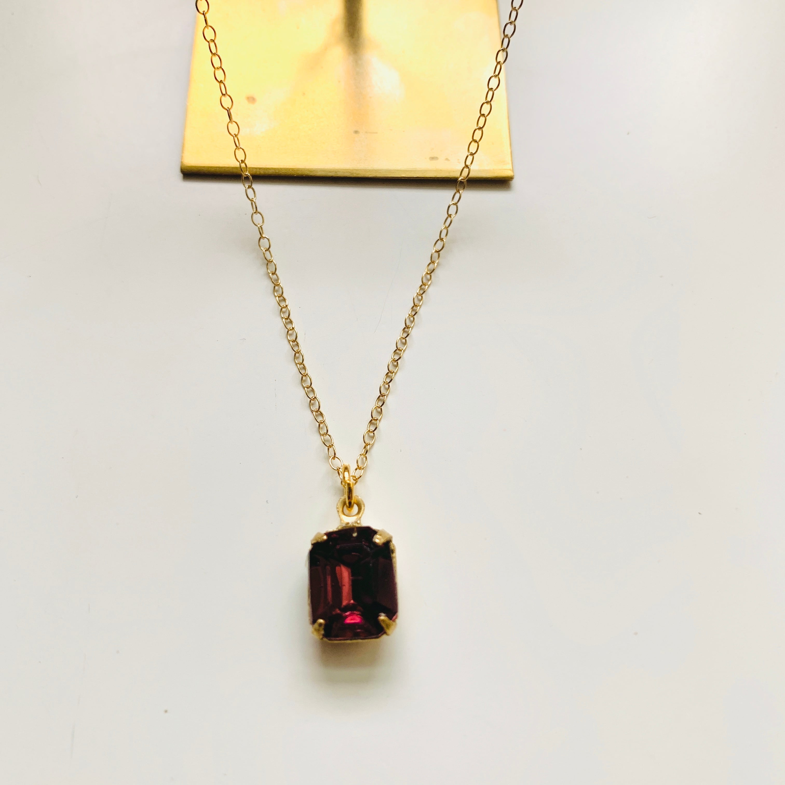 チェコスロバキアの1950年のヴィンテージガラス使用したハンドメイドよるペンダントです。パープルアメジストは、透明感のある赤みのかかった紫色。ヴィンテージならではの古きよきデザインやストーリーを感じていただけたら幸いです。