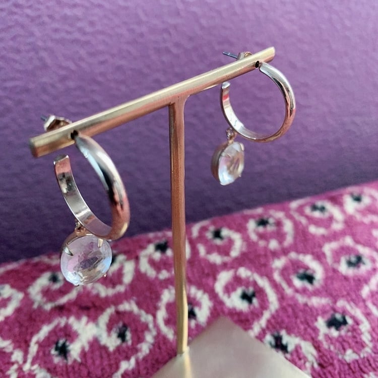 チェコスロバキアの1970年のヴィンテージガラス使用したハンドメイドよるピアスです。クリアークリスタルオーバルは、清楚で上品、存在感があります。ヴィンテージならではの古きよきデザインやストーリーを感じていただけたら幸いです。
